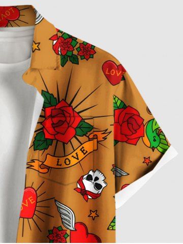 Chemise à Manches Courts> Plus Size Skull Rose Flower Heart Wing Print Hawaii Button Pocket Shirt For Men