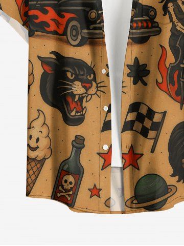 Chemise à Manches Courts> Plus Size Skull Tiger Fire Flame Car Print Button Pocket Shirt For Men
