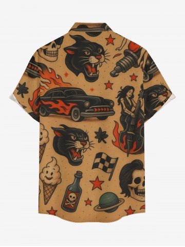 Chemise à Manches Courts> Plus Size Skull Tiger Fire Flame Car Print Button Pocket Shirt For Men