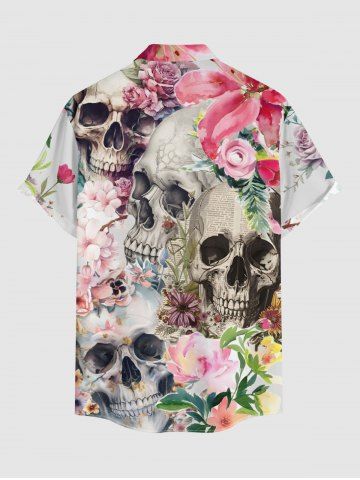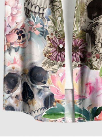 Chemise à Manches Courts> Plus Size Skulls Newspaper Flower Print Hawaii Button Pocket Shirt For Men