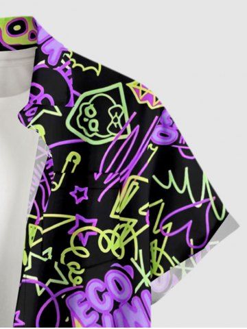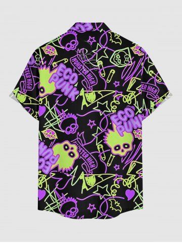 Plus Size Skulls Rock and Roll Print Hawaii Button Pocket Shirt For Men - Noir - Noir