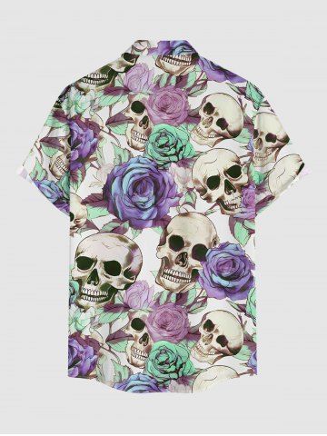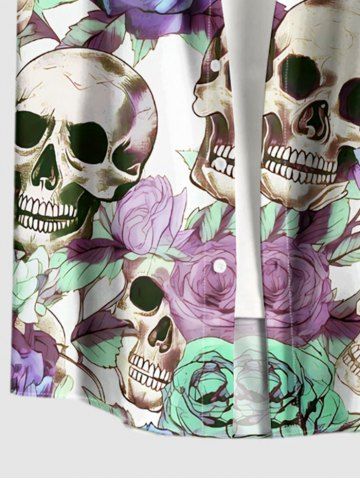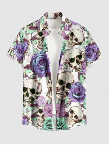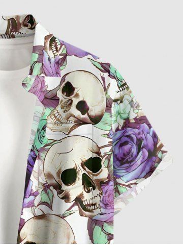 Plus Size Skulls Rose Flower Print Hawaii Button Pocket Shirt For Men - Pourpre - Pourpre