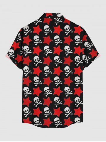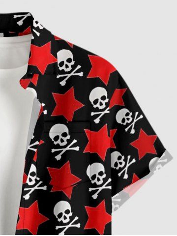 Plus Size Skulls Star Print Button Pocket Shirt For Men - Rouge - Rouge