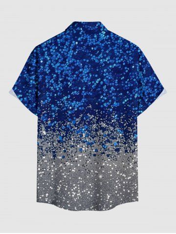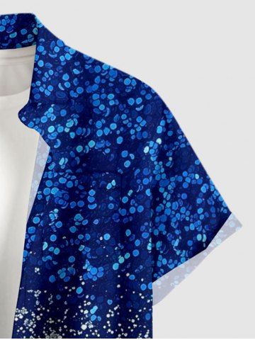 Plus Size Sparkling Sequin 3D Print Buttons Pocket Hawaii Shirt For Men - Bleu Profond - 2xl