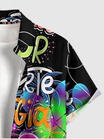 Chemise à Manches Courts> Plus Size Spider Web Butterfly Swan Letter Flower Print Hawaii Button Pocket Shirt For Men
