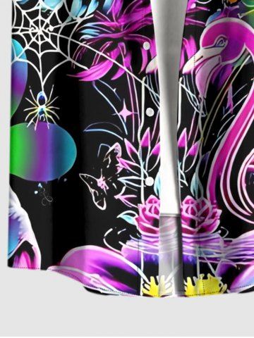 Plus Size Spider Web Butterfly Swan Letter Flower Print Hawaii Button Pocket Shirt For Men - Pourpre - Pourpre