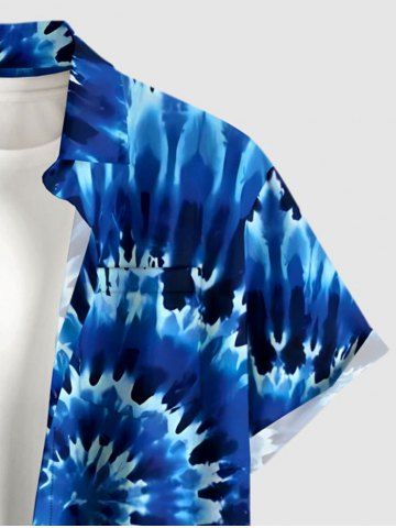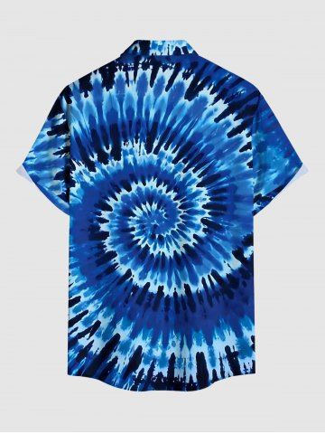 Plus Size Spiral Tie Dye Print Hawaii Button Pocket Shirt For Men - Bleu - Bleu