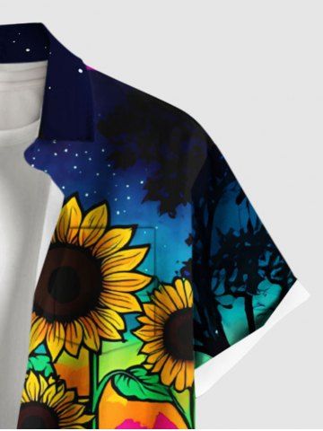 Plus Size Sunflowers Leaf Galaxy Print Buttons Pocket Hawaii Shirt For Men - Multi - Multi