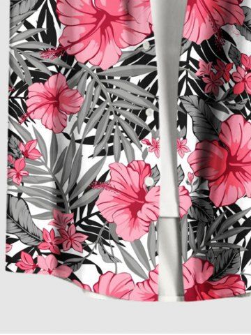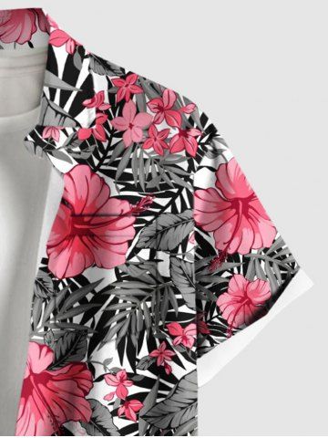 Plus Size Tropical Flowers Leaf Print Buttons Pocket Hawaii Shirt For Men - Rose Clair - Rose Léger