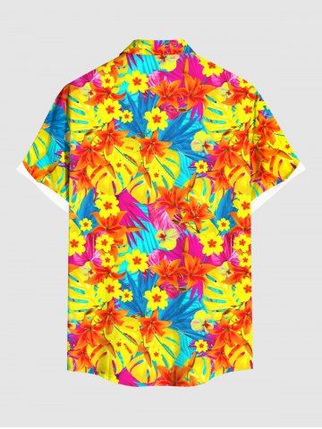 Plus Size Tropical Flowers Leaf Print Buttons Pocket Hawaii Shirt For Men - Jaune - Jaune