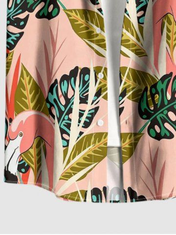 Chemise à Manches Courts> Plus Size Tropical Leaf Flamingo Print Hawaii Button Pocket Shirt For Men