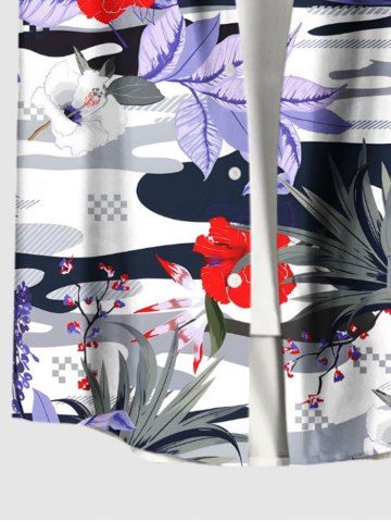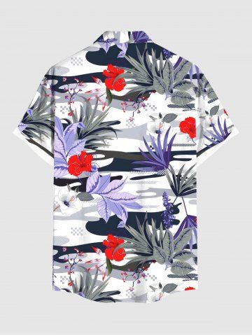 Plus Size Tropical Leaf Flower Print Hawaii Button Pocket Shirt For Men - Blanc - Blanc