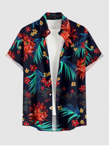 Chemise à Manches Courts> Plus Size Tropical Leaf Flower Print Hawaii Button Pocket Shirt For Men