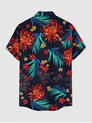 Chemise à Manches Courts> Plus Size Tropical Leaf Flower Print Hawaii Button Pocket Shirt For Men