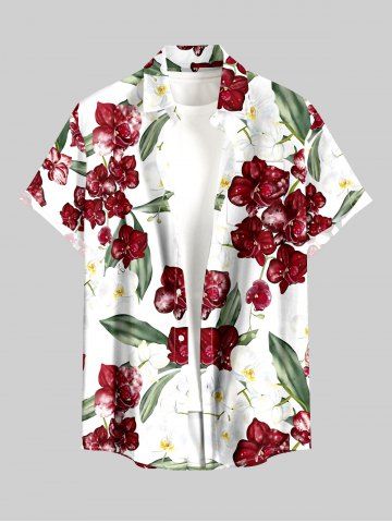 Plus Size Tropical Leaf Flower Print Hawaii Button Pocket Shirt For Men - Rouge Foncé - M