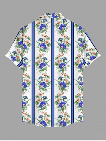 Chemise à Manches Courts> Plus Size Tropical Leaf Flower Striped Print Hawaii Button Pocket Shirt For Men