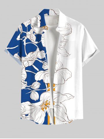 Plus Size Tropical Leaf Flowers Colorblock Print Buttons Pocket Hawaii Shirt For Men - Blanc - Blanc