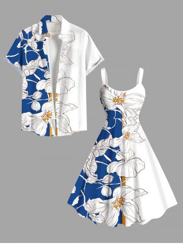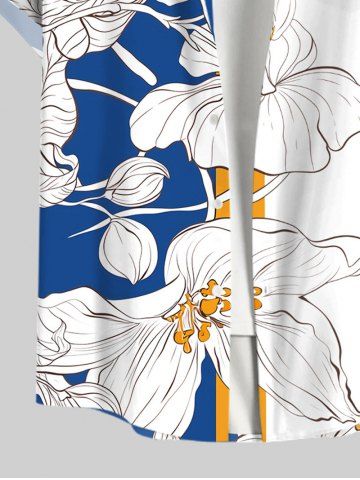 Plus Size Tropical Leaf Flowers Colorblock Print Buttons Pocket Hawaii Shirt For Men - Blanc - Blanc