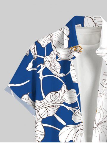 Chemise à Manches Courts> Plus Size Tropical Leaf Flowers Colorblock Print Buttons Pocket Hawaii Shirt For Men