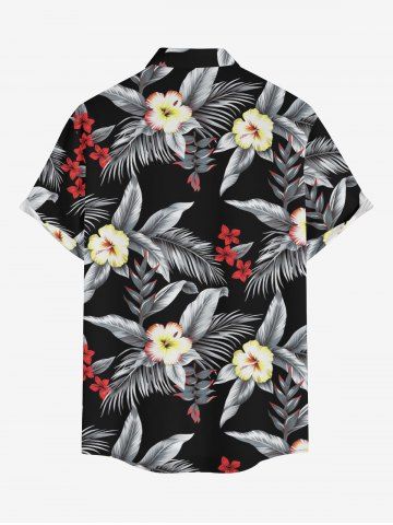 Plus Size Tropical Leaf Hibiscus Flower Print Hawaii Button Pocket Shirt For Men - Noir - Noir