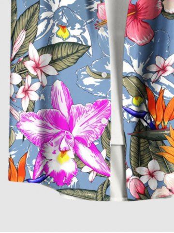 Plus Size Tropical Leaf Hibiscus Flower Print Hawaii Button Pocket Shirt For Men - Bleu Poudre - 6xl