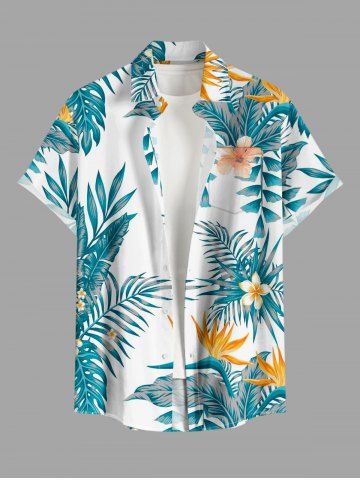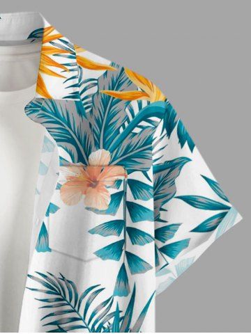 Chemise à Manches Courts> Plus Size Tropical Leaf Hibiscus Flower Print Hawaii Button Pocket Shirt For Men