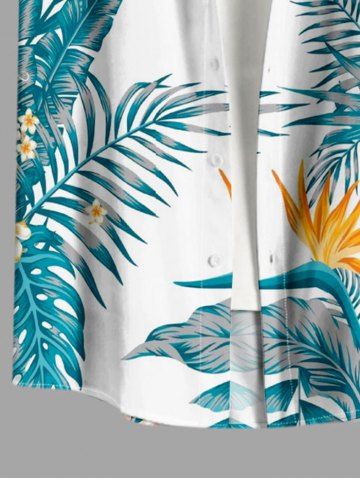 Plus Size Tropical Leaf Hibiscus Flower Print Hawaii Button Pocket Shirt For Men - Turquoise Foncée - L