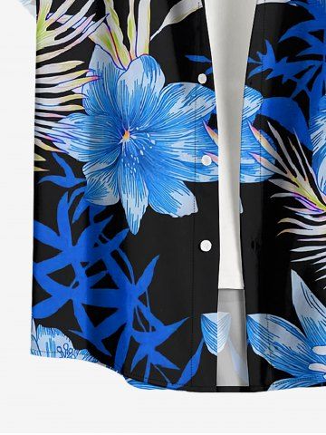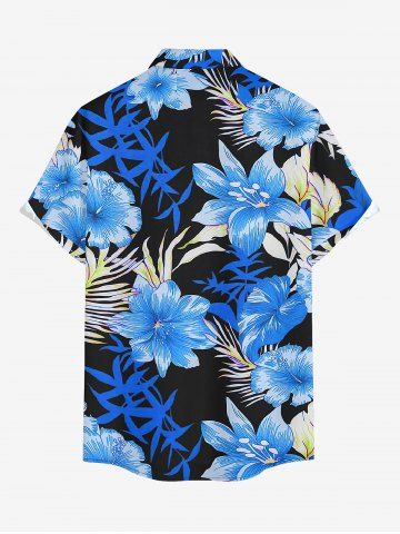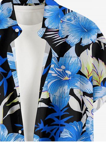 Plus Size Tropical Leaf Hibiscus Flower Print Hawaii Button Pocket Shirt For Men - Bleu - Bleu