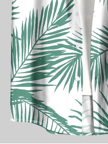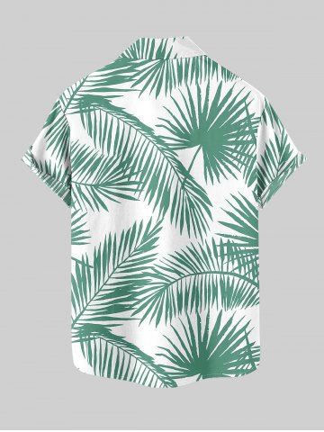 Plus Size Tropical Leaf Print Buttons Pocket Hawaii Shirt For Men - Vert - Vert