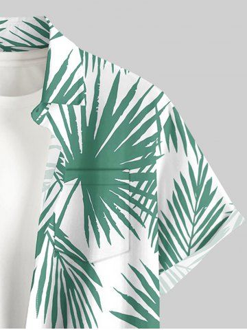 Plus Size Tropical Leaf Print Buttons Pocket Hawaii Shirt For Men - Vert - Vert