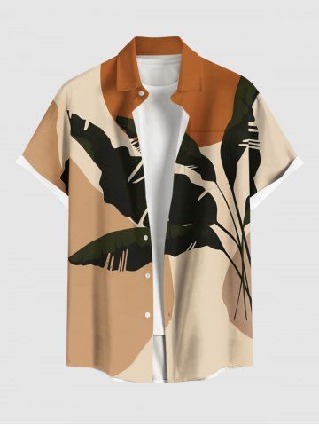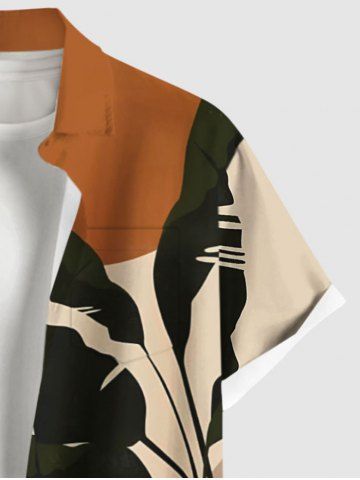 Chemise à Manches Courts> Plus Size Tropical Leaves Colorblock Print Hawaii Button Pocket Shirt For Men