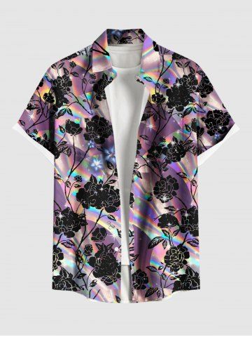 Plus Size Valentine's Day Rose Flower Rainbow Print Buttons Pocket Shirt For Men - Pourpre - Pourpre