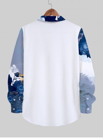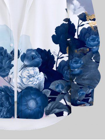 Chemise à Manches Longues> Chemise avec Boutons et à Imprimé Fleurs à L'Encre en Dégradé de Couleurs pour Hommes Grande-Taille