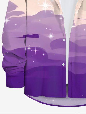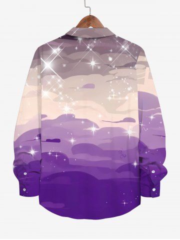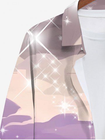 Chemise Boutonnée Etoile Brillante Ombre Nuage Imprimés de Grande Taille avec Bouton - Pourpre - Pourpre