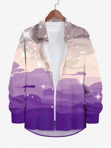 Chemise à Manches Longues> Chemise Boutonnée Etoile Brillante Ombre Nuage Imprimés de Grande Taille avec Bouton