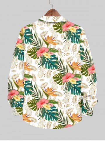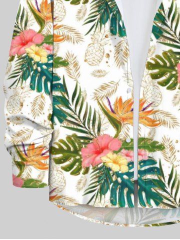 Chemise D'Ananas Feuille Fleur Tropical Imprimé avec Boutons de Grande Taille à Manches Longues - Multi-a - Xl