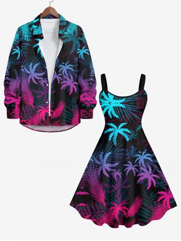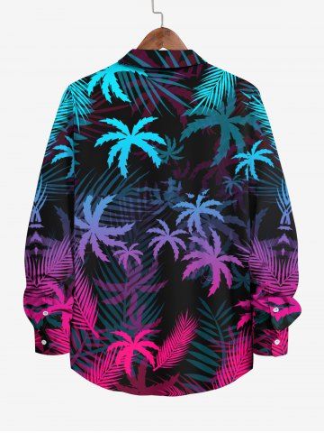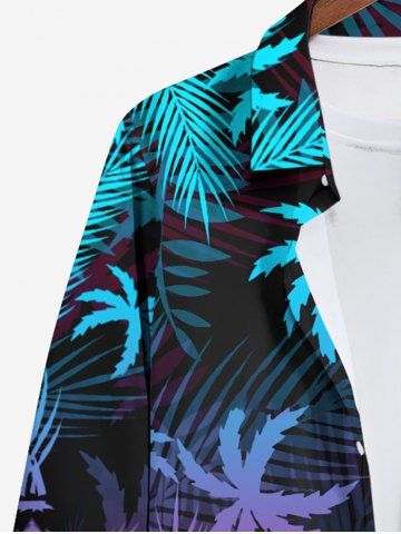 Chemise Décontractée Boutonnée Feuille Tropicale Imprimée en Blocs de Couleurs à Manches Longues Grande Taille pour Homme - Noir - Noir