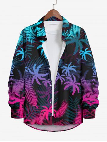 Chemise à Manches Longues> Chemise Décontractée Boutonnée Feuille Tropicale Imprimée en Blocs de Couleurs à Manches Longues Grande Taille pour Homme
