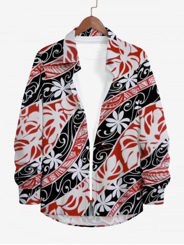 Chemise à Manches Longues> Chemise Décontractée Feuille Tropicale Imprimée en Blocs de Couleurs avec Boutons Grande Taille pour Homme