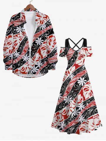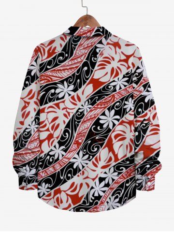 Chemise à Manches Longues> Chemise Décontractée Feuille Tropicale Imprimée en Blocs de Couleurs avec Boutons Grande Taille pour Homme