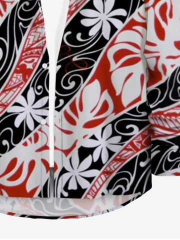 Chemise à Manches Longues> Chemise Décontractée Feuille Tropicale Imprimée en Blocs de Couleurs avec Boutons Grande Taille pour Homme