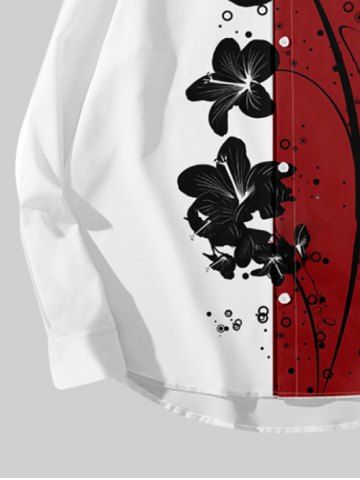 Chemise à Manches Longues> Chemise Décontractée Fleur Imprimée en Blocs de Couleurs avec Bouton de Grande Taille pour Homme