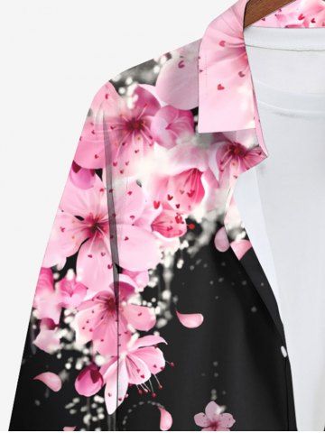 Chemise Fleur de Pêche Imprimée de Grande Taille avec Bouton pour Homme - Noir - Noir