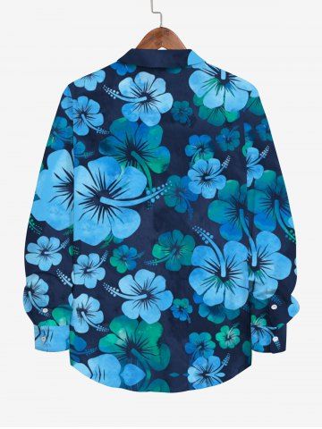 Chemise Imprimé Plante Tropicale à Boutons à Manches Longues Grande Taille avec Poche pour Homme - Multi-a - L