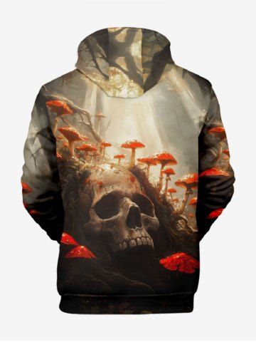 Chemise à Manches Longues> Sweat à capuche grande taille avec imprimé tête de mort, champignon, soleil et forêt, cordon de serrage, poche, pour homme