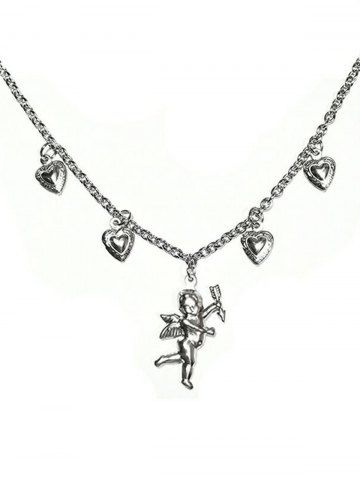 Collier Chaîne Pendant Cœur Cupidon Ange - Argent - Argent