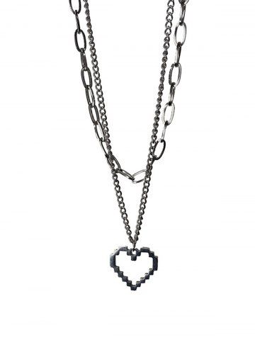Collier Mosaïque Pendant à Double Couches Cœur - Argent - Argent