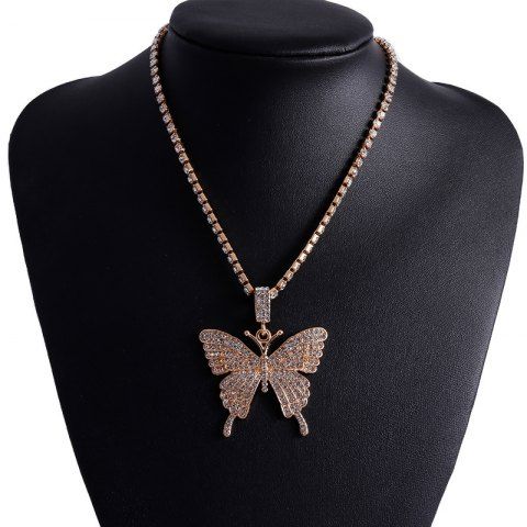 Collier Pendant Papillon Exagéré avec Strass Large - D'or - Or