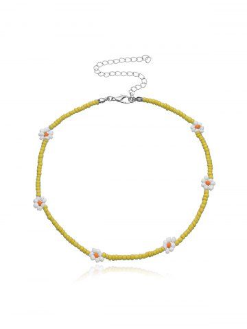 Collier Ras-de-Cou Tendance Motif Fleurs et Perles - Jaune - Jaune