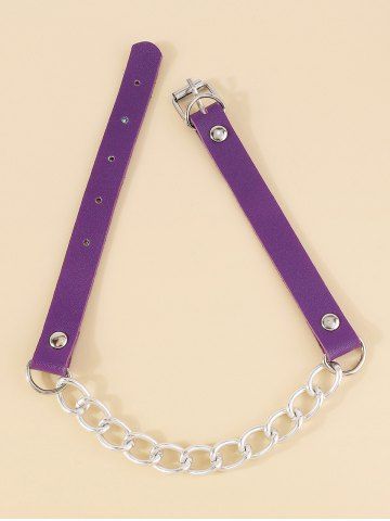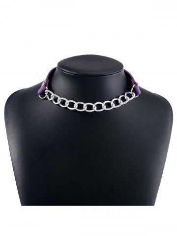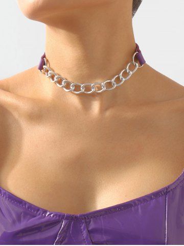 Collier Ras du Cou Décoré de Boucles et Chaîne en Cuir Artificiel - Pourpre - Pourpre